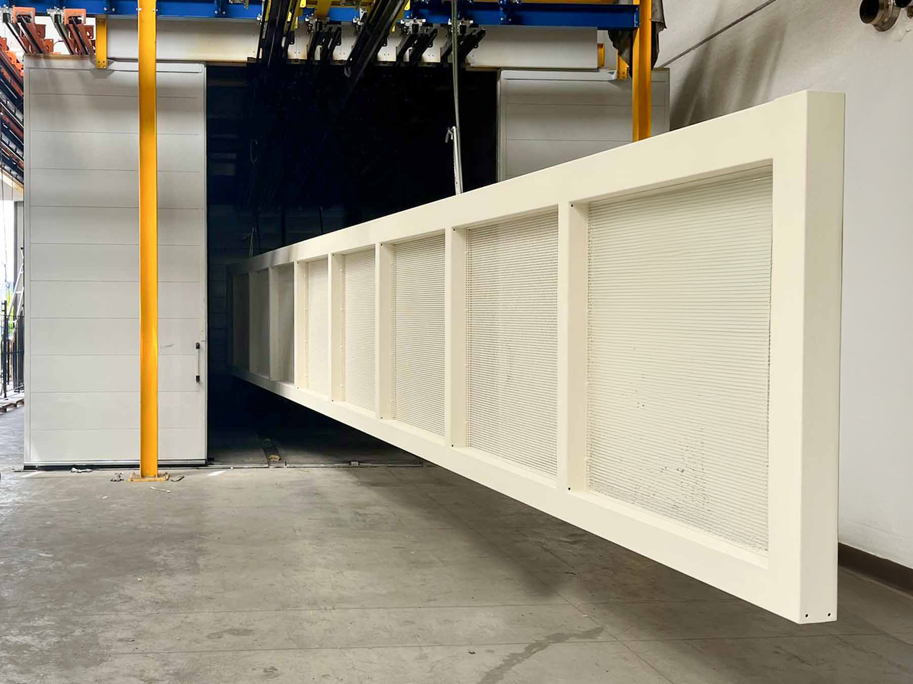 Impianto con lavaggio ad elevata tensione superficiale ed alta bagnabilità che permette la formazione di uno strato di conversione uniforme e compatto con una maggiore aderenza della vernice. La cabina di verniciatura è munita di pistole robotizzate con recupero.